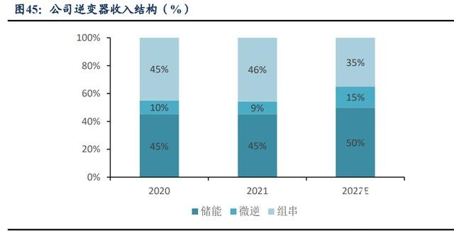 儲能優質賽道,公司重點發力。2021 年公司逆變器銷售 38.83 萬臺,其中儲能/組串 式/微型逆變器分別為 7.03/21.5/10.29 萬臺,儲能逆變器銷售額占比 44.5%。公司儲能產 品以戶儲為主,預計近三年銷售占比均在 44%以上,保持占比第一。儲能產品主供海外, 市場高需求致使溢價十足,公司儲能逆變器價格及毛利率都高于其他類別產品,2021 年 儲能/組串式/微型逆變器毛利率分別40%/33%/36%。高溢價+高增速,公司重點發力 儲能優質賽道。