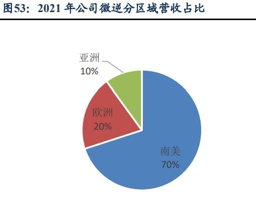 巴西為公司微逆主要市場。從公司的銷售商分布來看,德業主要市場為巴西、南非、 土耳其、波蘭等國,截止 2021 年 12 月公司在全球中銷售商數量為 83 家,其中巴西的 銷售商達 29 家。從營收分區域占比看,2021 年南美市場收入占比達 70%,其次是歐洲, 占比約 20%,亞洲約 10%,巴西是公司微逆業務的最大市場。