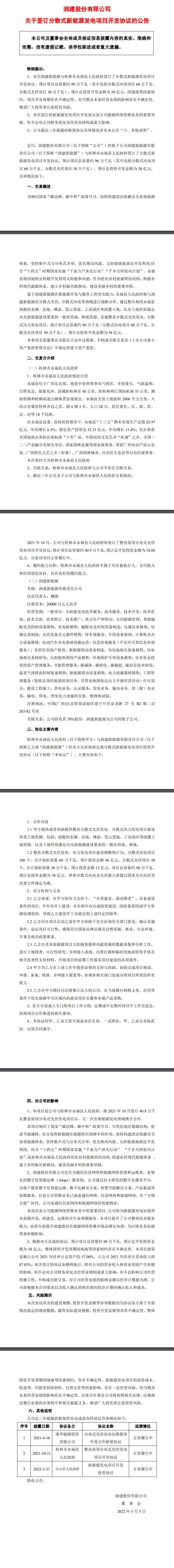 2021 年 10 月,潤建股份曾與桂林市永??h人民政府府簽訂了整縣屋頂分布式光伏發電項目開發協議,預計項目總容量約 40.9 萬千瓦,預計總開發投資金額為 18.06億元。目前該項目正常履行中。