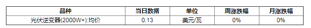 10月28日光伏-逆變器價格近一個月以來無異動:光伏逆變器(2000W+)當周報價0.13美元/瓦。