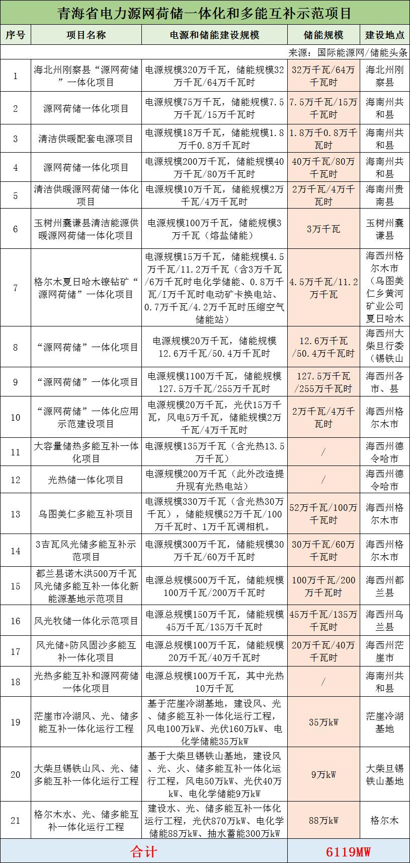 2021年6月11日,青海省能源局印發《關于2021年市場化并網項目開發建設有關事項的通知》,明確了青海適于采取市場化并網方式建設的項目主要為源網荷儲一體化和多能互補項目,篩選確定了2021年首批市場化并網重點推進項目20個,其中源網荷儲和多能互補項目17個。