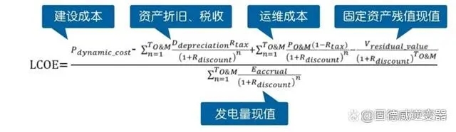 平準化度電成本( Levelized Cost of Energy):衡量光伏電站整個生命周期的單位發電量成本,并可用來與其他電源發電成本對比。LCOE可用于收益率的復核和最優投資方案的選擇。